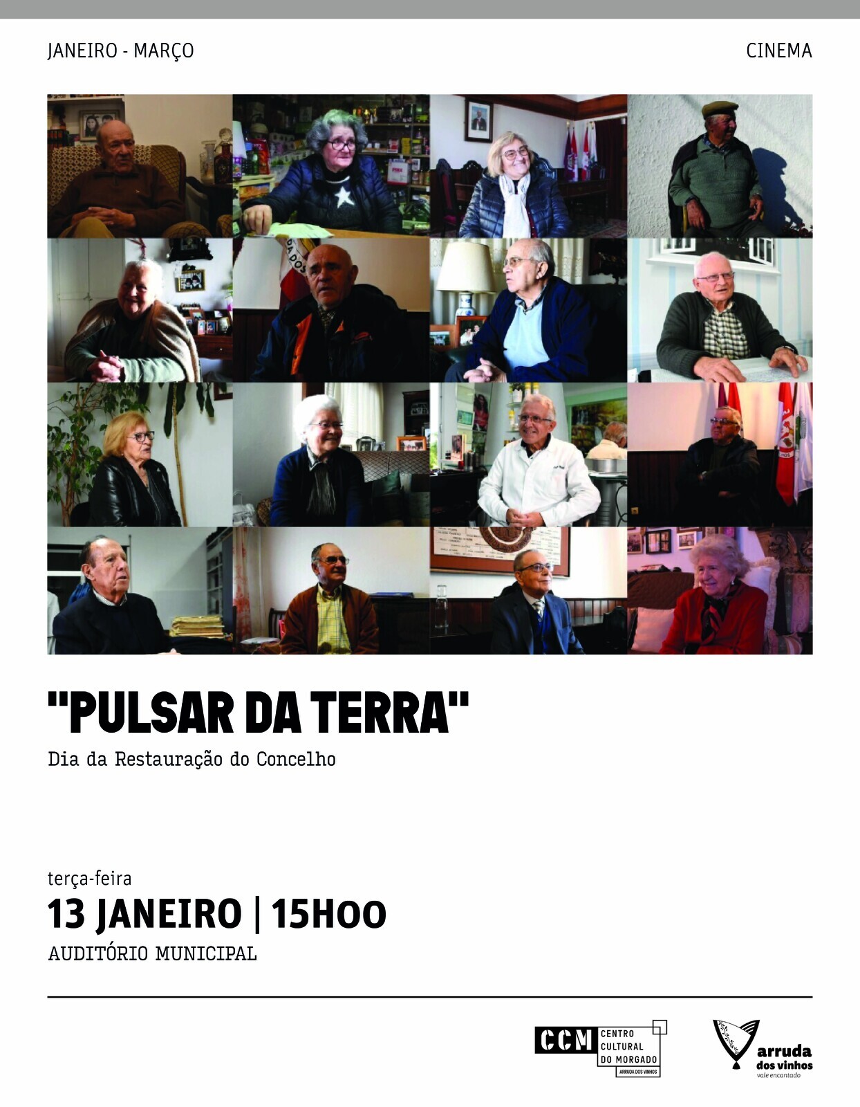 No dia 13 de janeiro de 2026, data que se assinala a restauração do Concelho (13 de janeiro de 1898) será exibido um pequeno documentário no Auditório Municipal que pretende dar a conhecer parte destas entrevistas, procurando homenagear assim todos os Arrudenses, bem como parte da nossa memória e identidade coletivas.