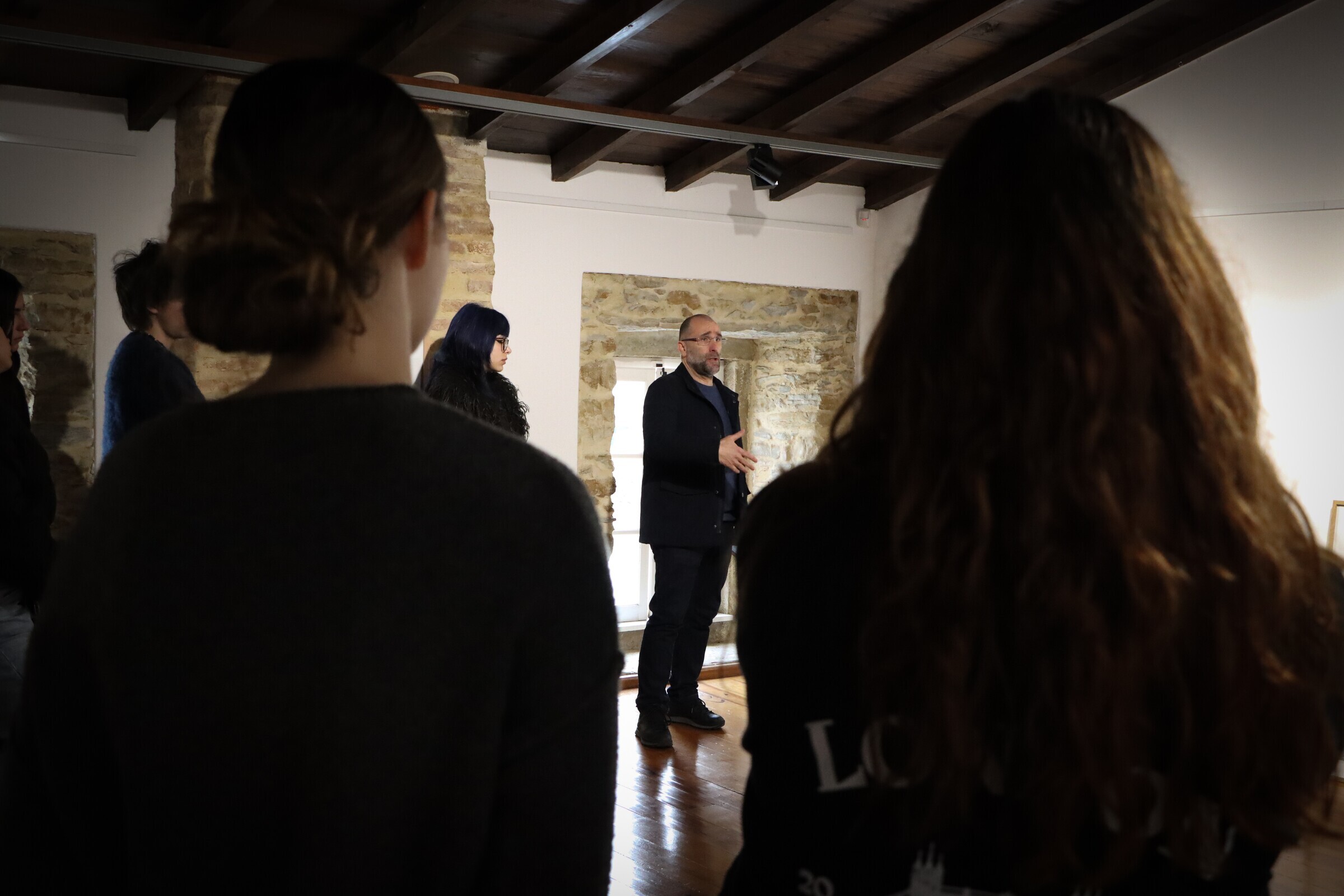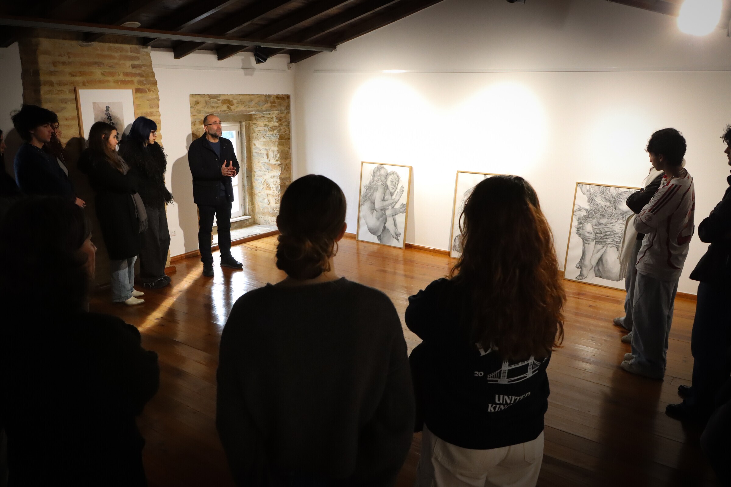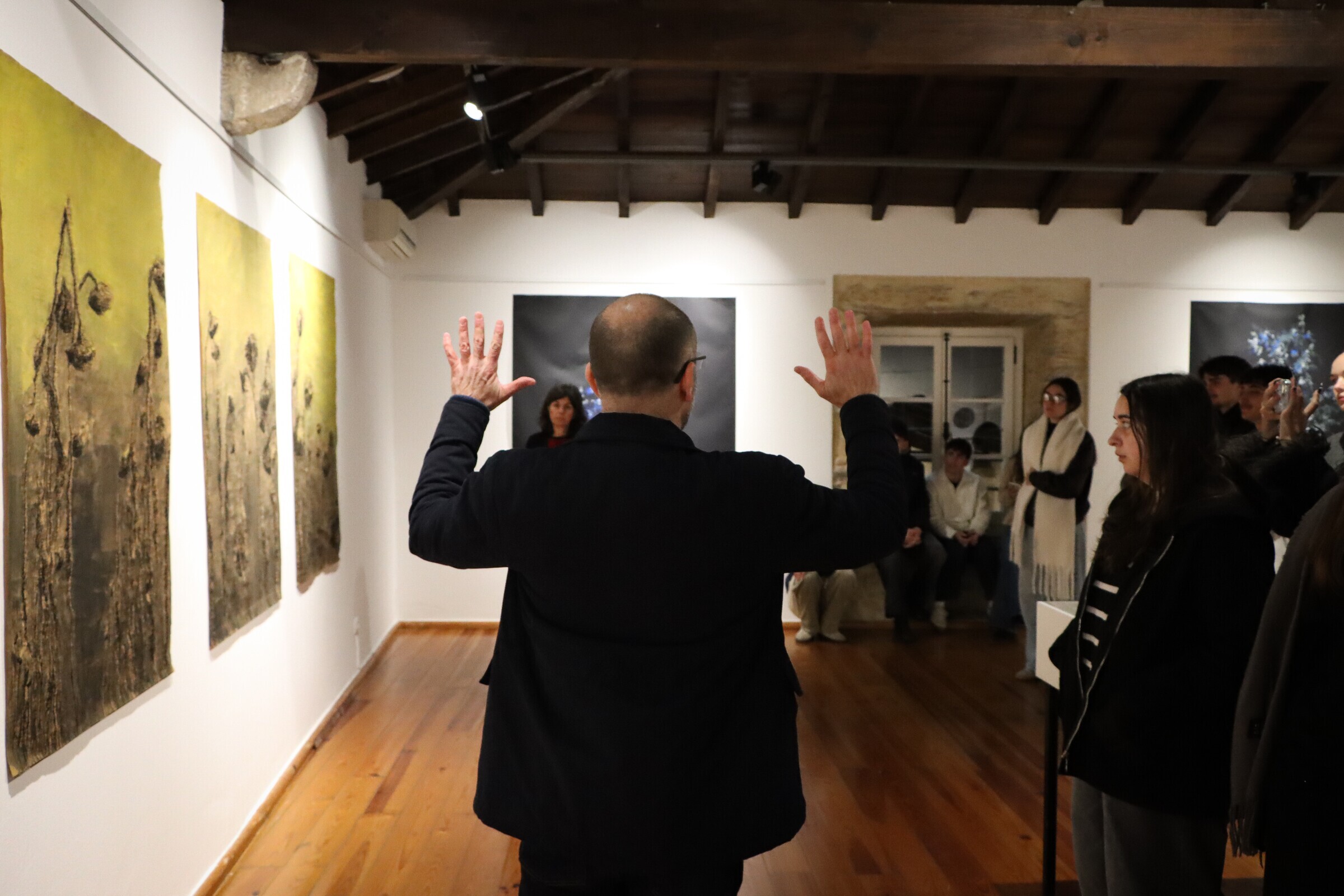 Ao longo da visita foram abordadas questões centrais da arte contemporânea, em diálogo com referências literárias como “Cidades Invisíveis” de Ítalo Calvino e “A Metamorfose” de Kafka, estabelecendo pontes com as obras em exposição.