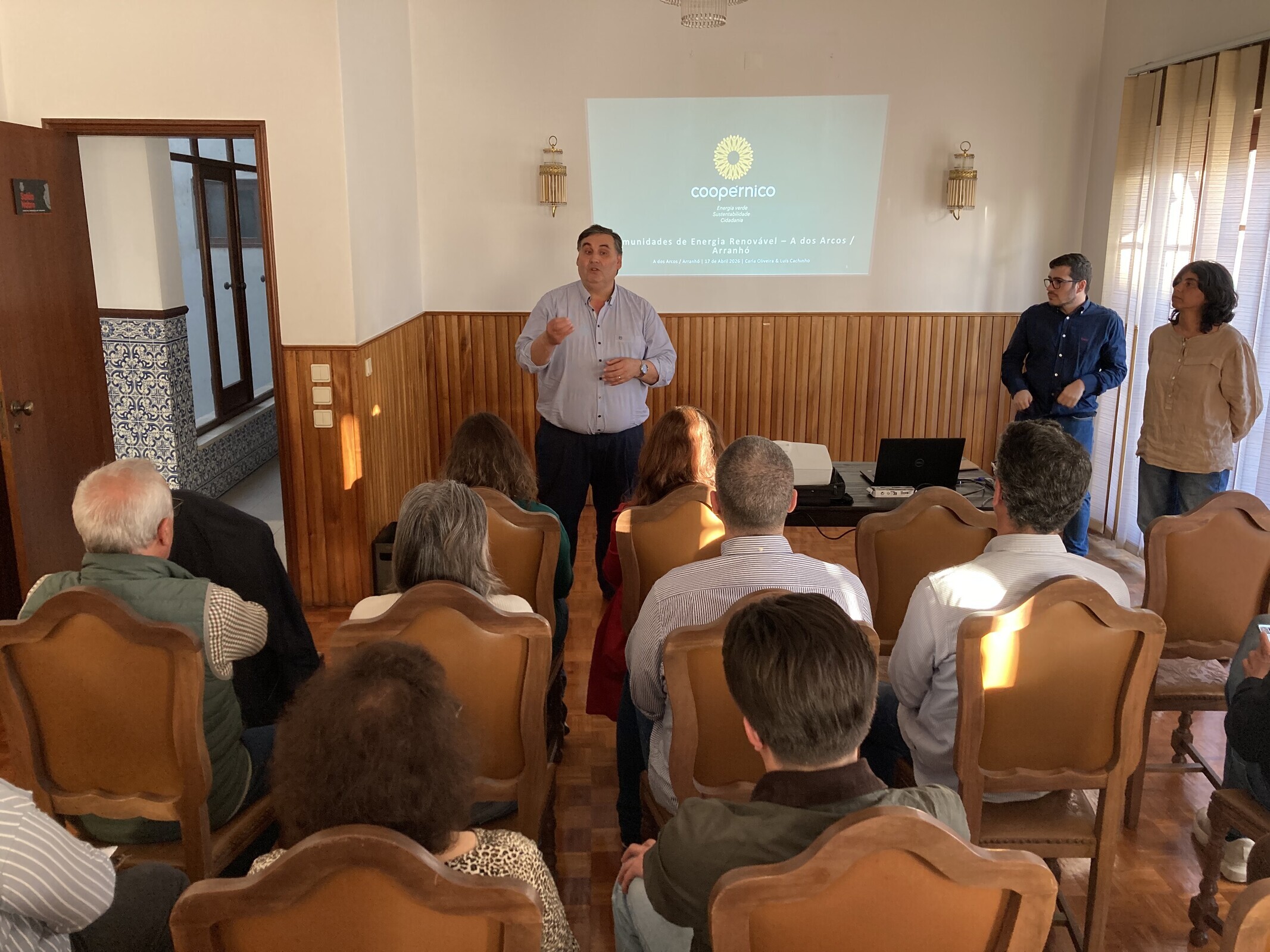 Nos dias 14 e 17 de abril, realizaram-se reuniões com a Coopérnico no âmbito da apresentação da Comunidade de Energia Renovável (CER) em A-dos-Arcos, na Freguesia de Arranhó.